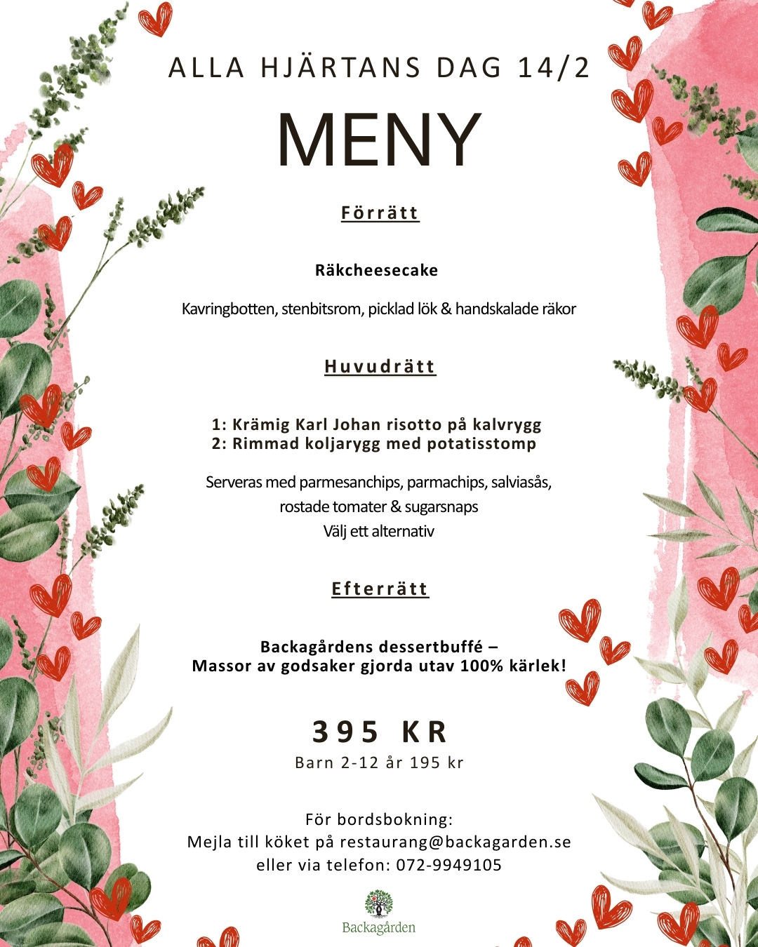 Fira din älskling hos oss på alla ❤-dag den 14/2!